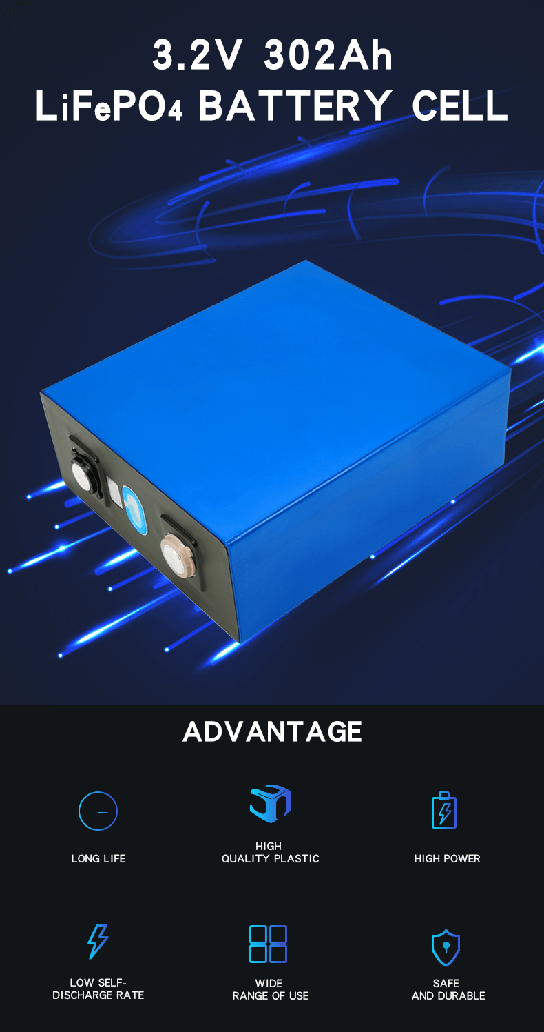 دا د UL تصدیق شوی 3.2V 302Ah LiFePO4 بیټرۍ سیل لاندې ګټې لري: