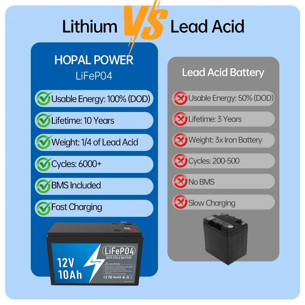 الف: زموږ بیټرۍ د A درجې LiFePO₄ حجرو څخه جوړې شوې دي، چې د 80٪ DoD سره له 6000 څخه ډیر دورې او تر 10 کلونو پورې عمر لري.