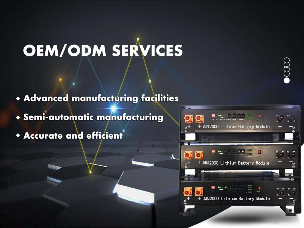 1.AIN2000 48v لمریز سیسټم بیټرۍ د لوړ فعالیت LFP سیل 3.2V 50Ah او EV معیاري جوړښت سره رامینځته شوی ترڅو د خوندیتوب او نامتو خدمت ژوند تضمین کړي.